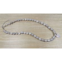 Féldrágakő, ásványgyöngy nyakék lánchosszabbítóval, delfinkapoccsal.