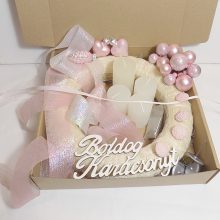 3 féle hozzá illő szalaggal küldjük, a két széles csillámosból 3-3 métert a keskenyből 2 métert.