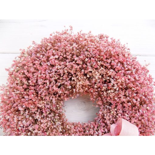 Fátyolvirág koszorú, természetes, korallrózsaszín ∅:32cm
