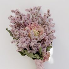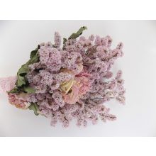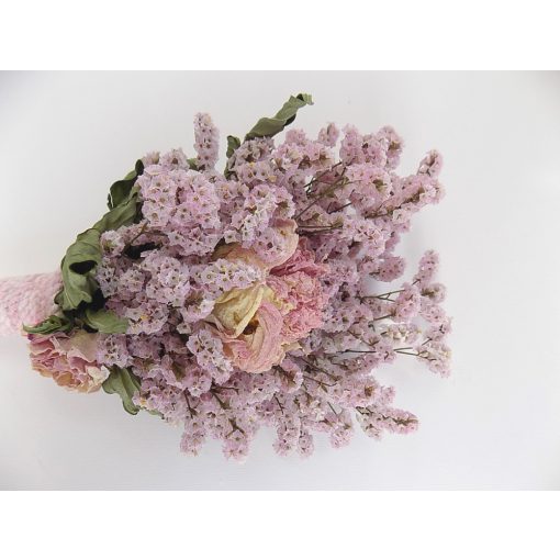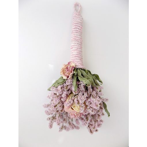 Felakasztható, szárazvirág kompozíció, paeoniával, limóniummal, rózsával. 34x16cm