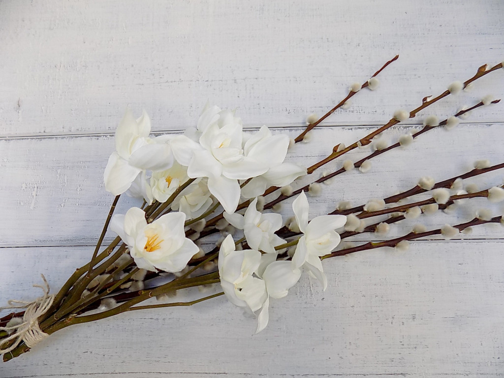 Tavaszi csokor nemes barkával, nárcisszal. 60 cm